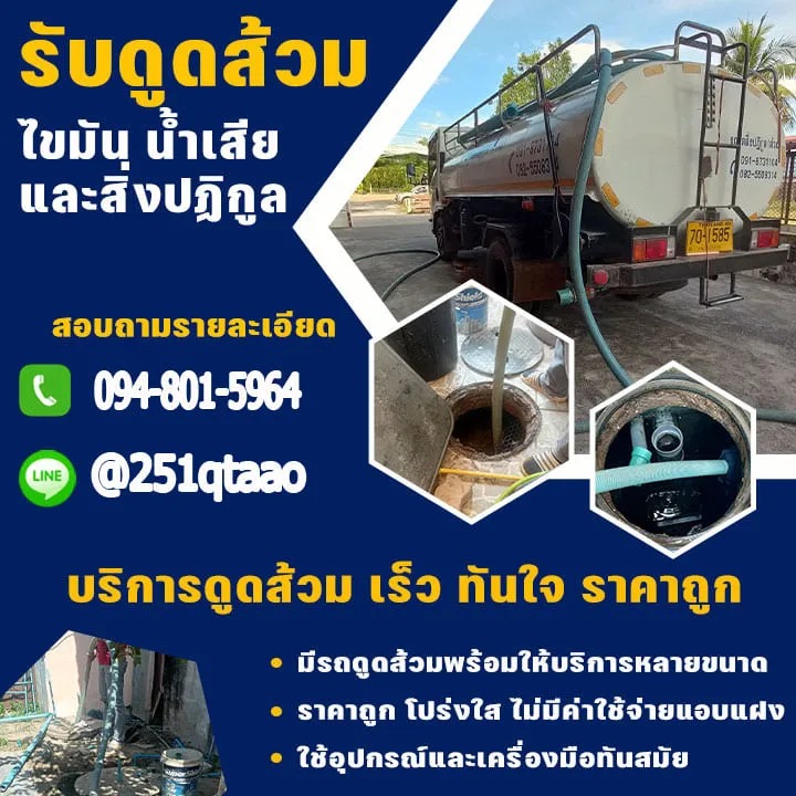 ถือเป็นอีกประเภทงานบริการที่มีความสำคัญต่อผู้อยู่อาศัยทุกคน ทุกพื้นที่อาคารอย่างมาก การเลือกจ้างผู้เชี่ยวชาญในการรับดูดส้วม…..จึงเป็นทางเลือกที่พร้อมตอบโจทย์ทุกคนมากที่สุด ยินดีให้บริการทั่วไทย โดยเฉพาะพื้นที่กรุงเทพฯ ปริมณฑล งานเร็วทันใจ ราคาไม่แพง ค้นหารับดูดส้วมใกล้ฉัน จากนั้นเลือกติดต่อมาหาทีมงานของเราได้ทันที ยินดีนำเสนอความเหนือระดับเพื่อทุกคน